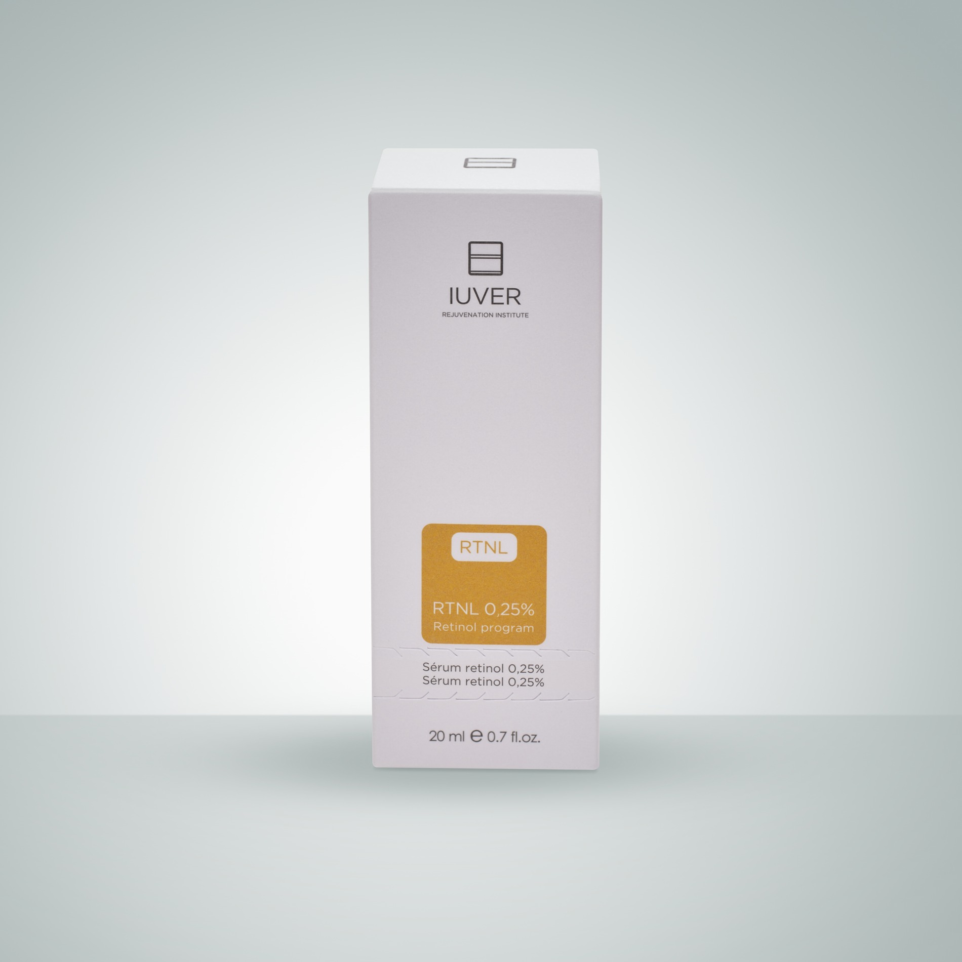 IUVER RTNL 0´25% de tratamiento antioxidante, que ayuda a la renovación celular de la epidermis, para minimizar la apariencia de las manchas de la edad, mejorar la textura de la piel y prevenir la aparición de las líneas de expresión y arrugas, mejorando la firmeza y la textura de la piel.